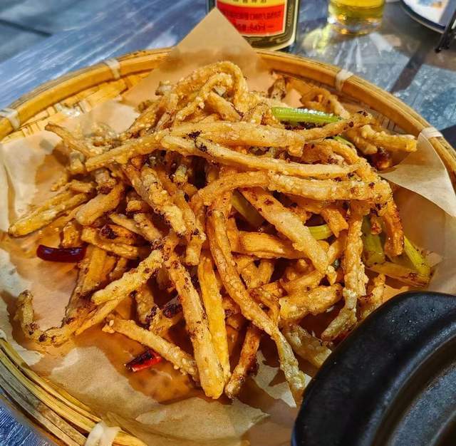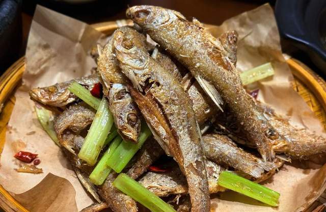刁子鱼:刁子鱼被炸得酥脆椒香,感觉连骨头都能吃的那种,吃起来咸香口,菜品火候把握的好,咬起来都是一丝丝的鱼肉。