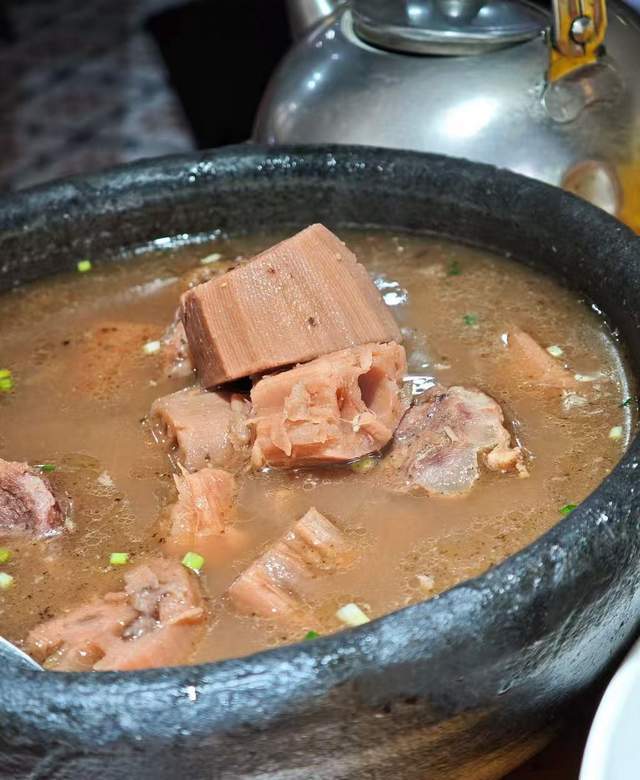 莲藕排骨汤:选用的洪湖九孔藕,直接和排骨炖了几个小时上桌,藕吃起来粉糯细腻,排骨的油脂和藕一起,清爽不油腻。