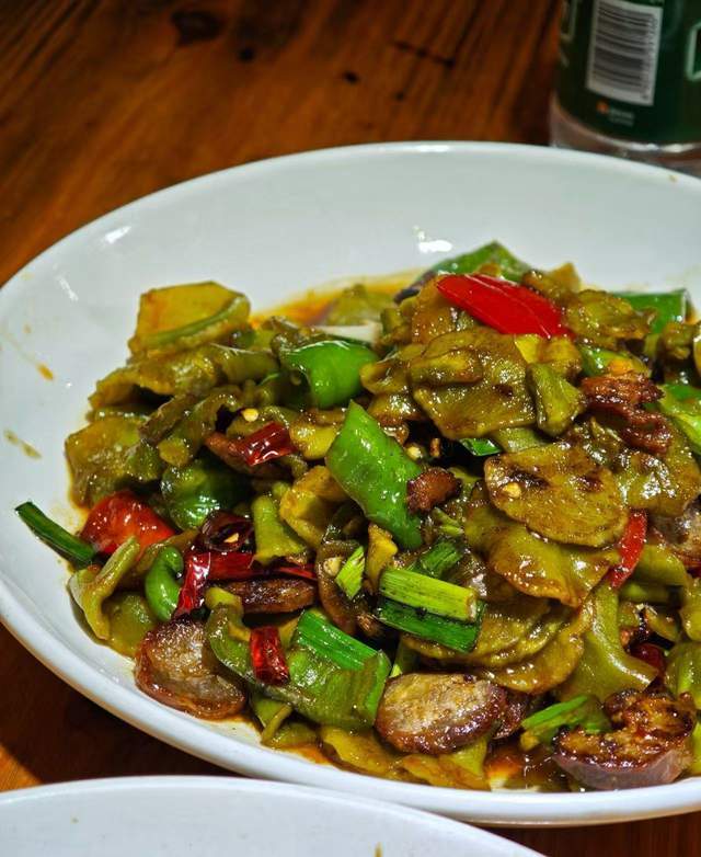 腌莴笋炒香肠:莴笋被腌制,口感更脆爽,搭配香肠一起炒,莴笋吃起来真的比肉菜还好吃,是很多人喜欢的素菜一绝。