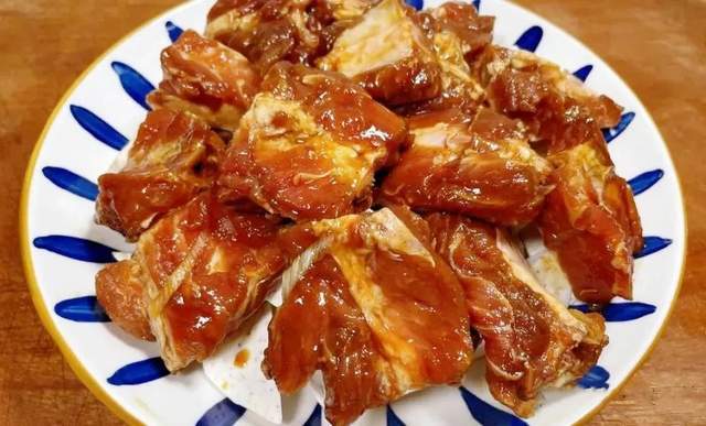 接下来给排骨调味:加入适量生抽、一点点老抽上色、一勺蚝油、少许料酒去腥、一点点胡椒粉、适量盐,再放入姜片和蒜末。用手抓匀,一定要让每一块排骨都均匀地裹上调料,多抓一会儿,让排骨充分吸收味道,抓匀后盖上保鲜膜,放冰箱冷藏腌制至少半个小时,时间充裕的话,腌得越久越入味。