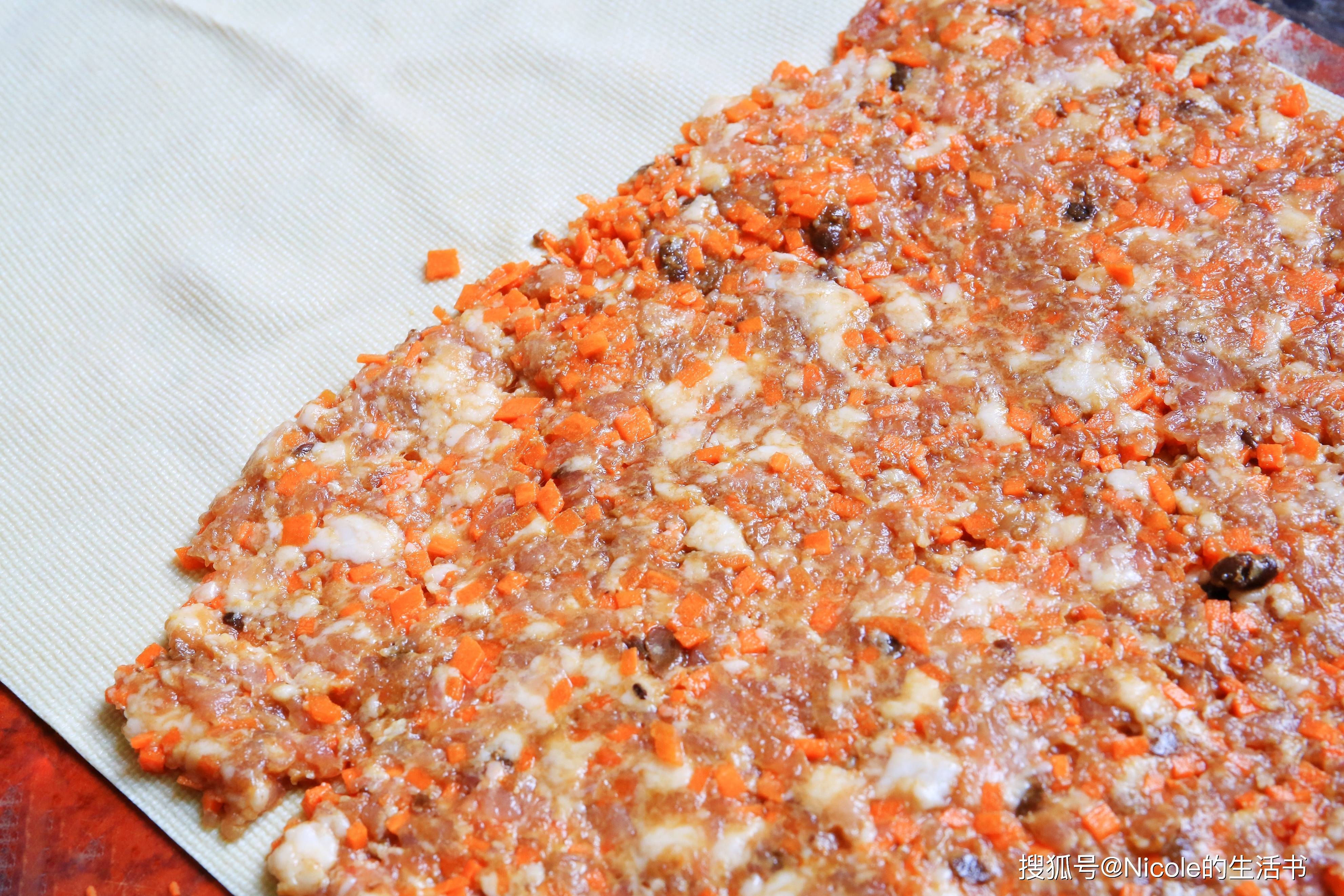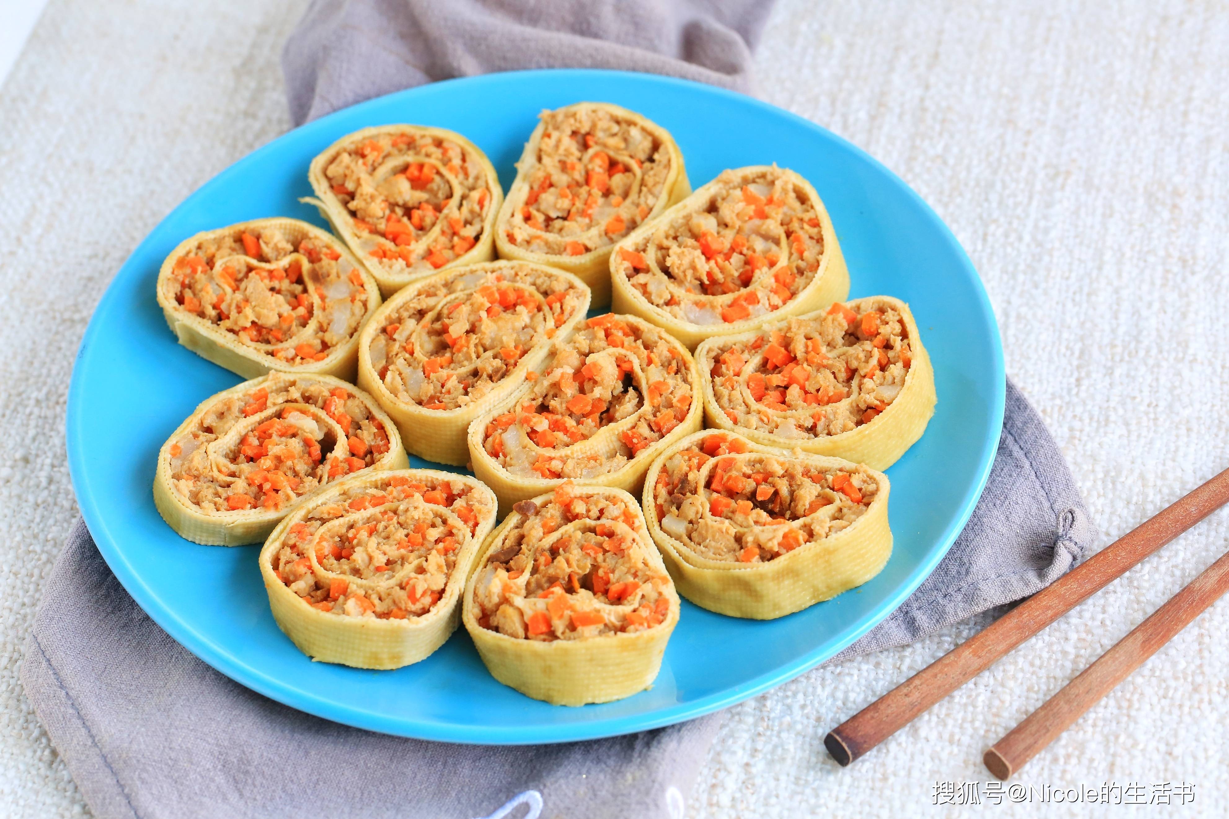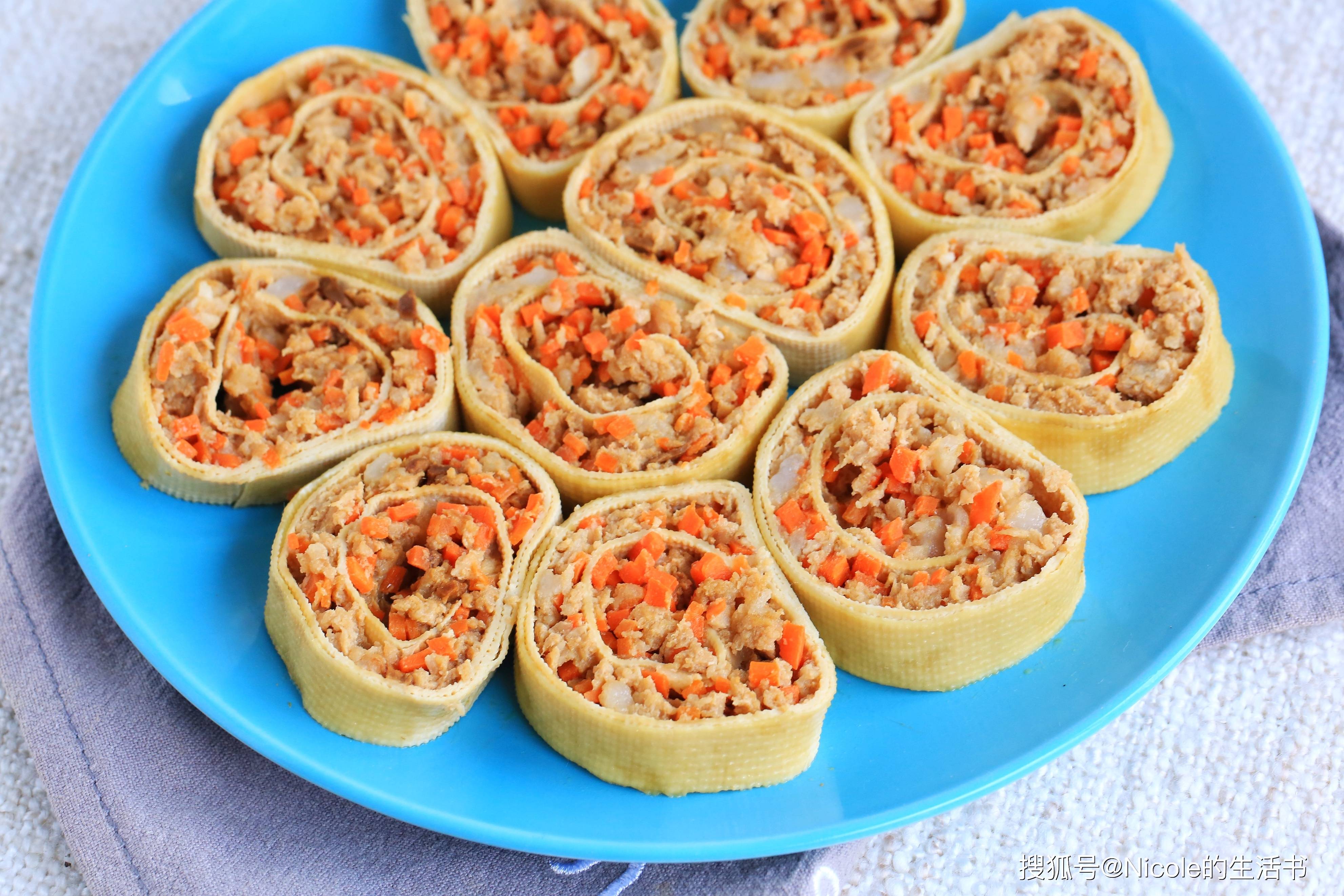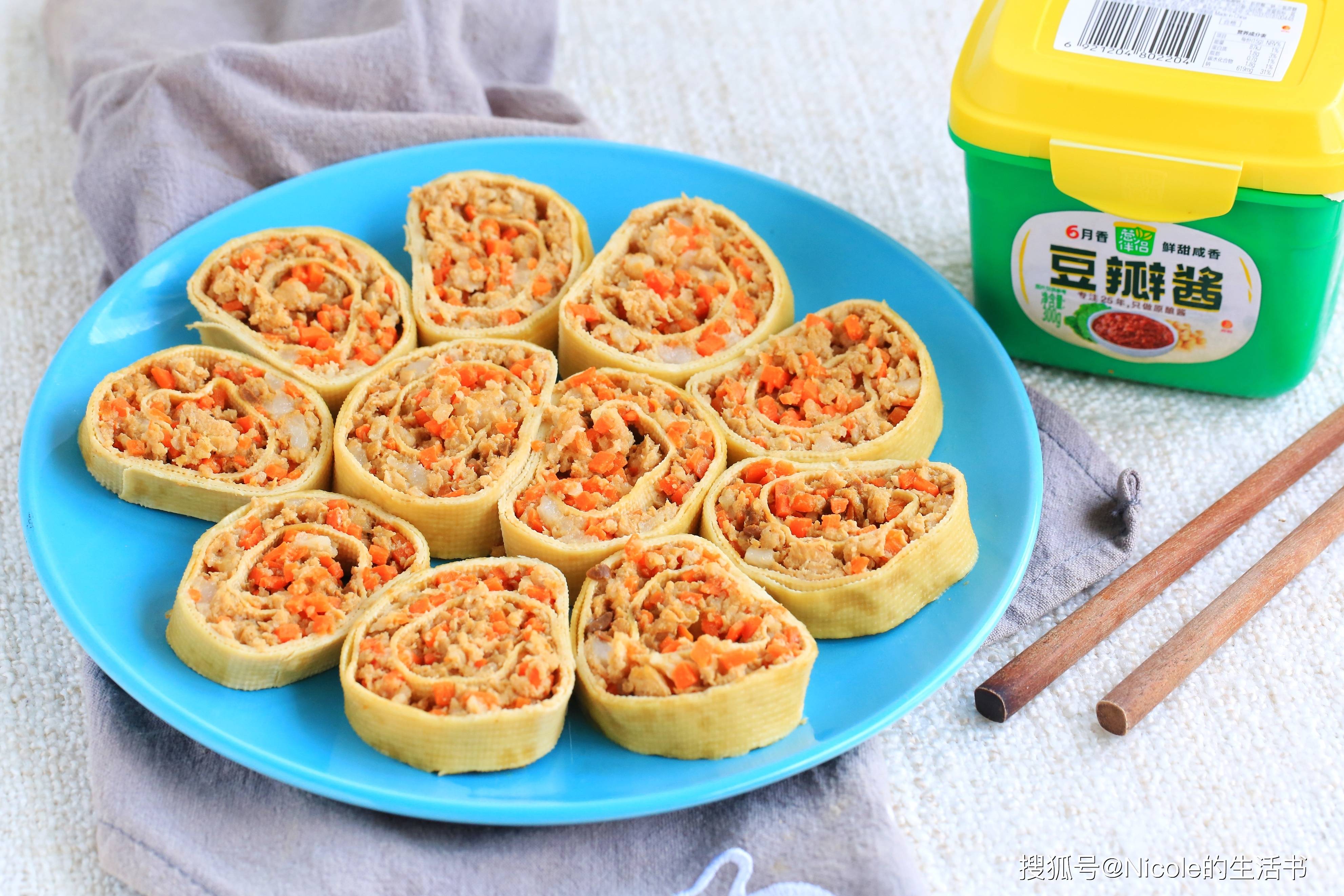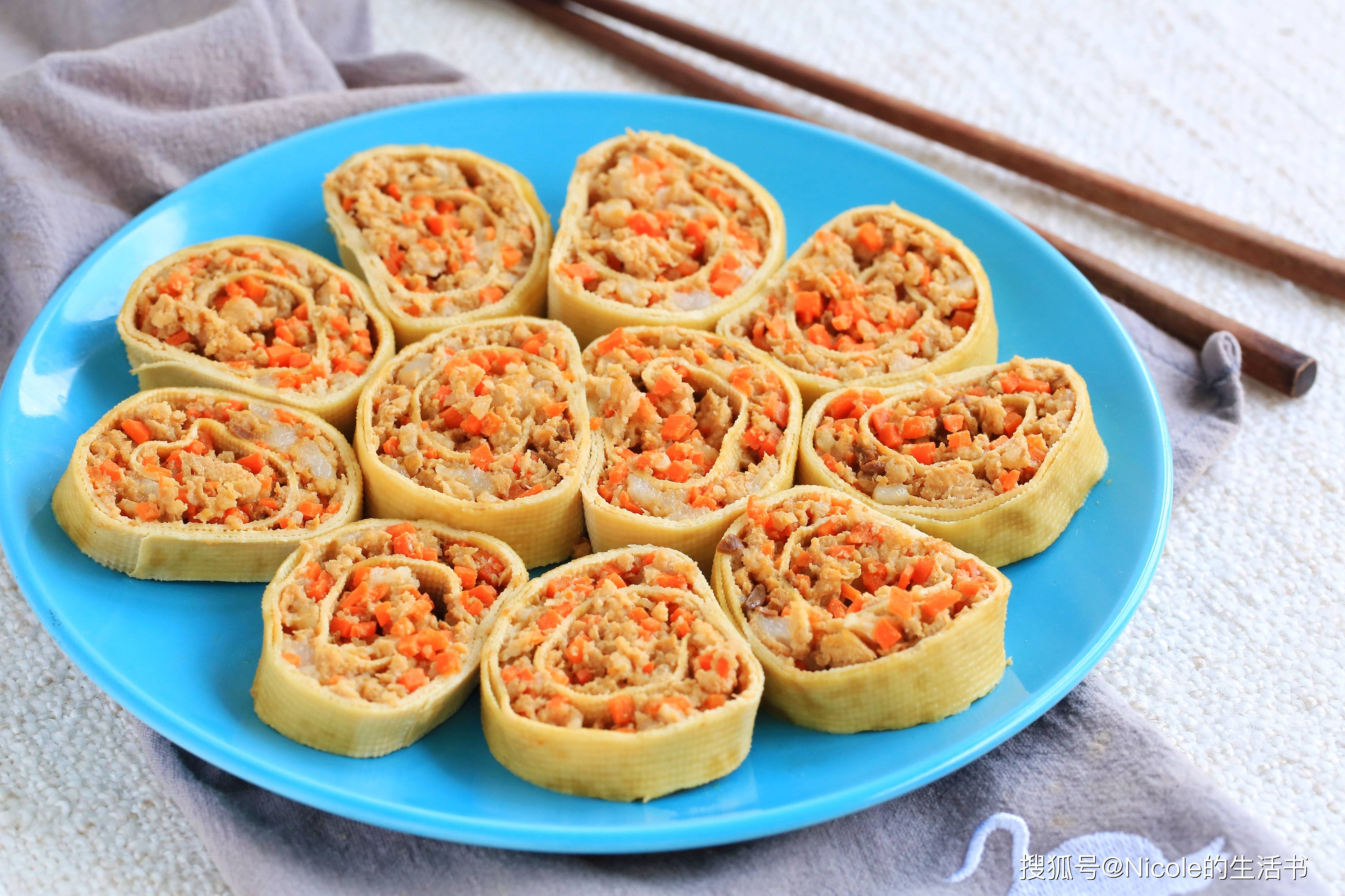 切片装盘,层次分明的切面里,豆腐皮的乳白、肉馅的棕红、胡萝卜的浅橙相映成趣,一口下去,软韧的千张裹挟着咸香入味的肉馅,酱香不重不轻,刚好衬托出食材本身的鲜美。